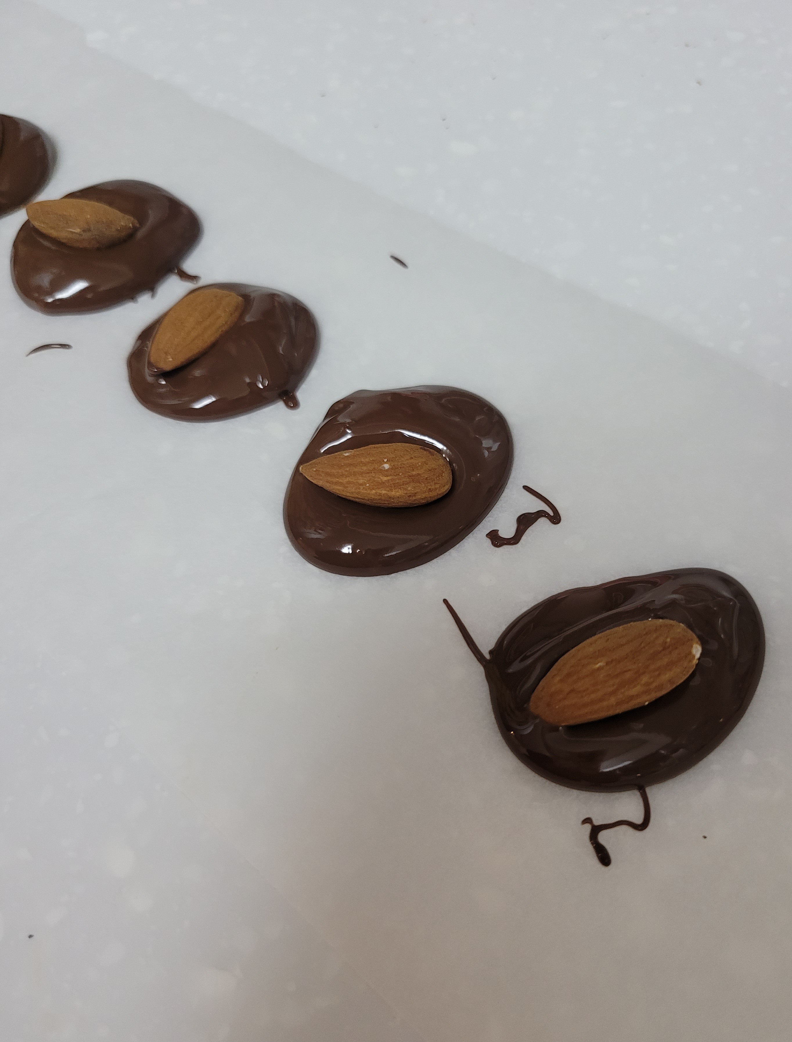 종이 호일을 깔아놓고 숟가락에 녹은 초콜릿을 담은 뒤에 양을 조절해가며 살짝살짝 초콜릿을 덜어낸다냉동실에 5분만 놔두면 예쁘게 굳는다 견과류를 먹기싫은 분들이나 건강한 디저트를 만들기에 좋은 것 같다