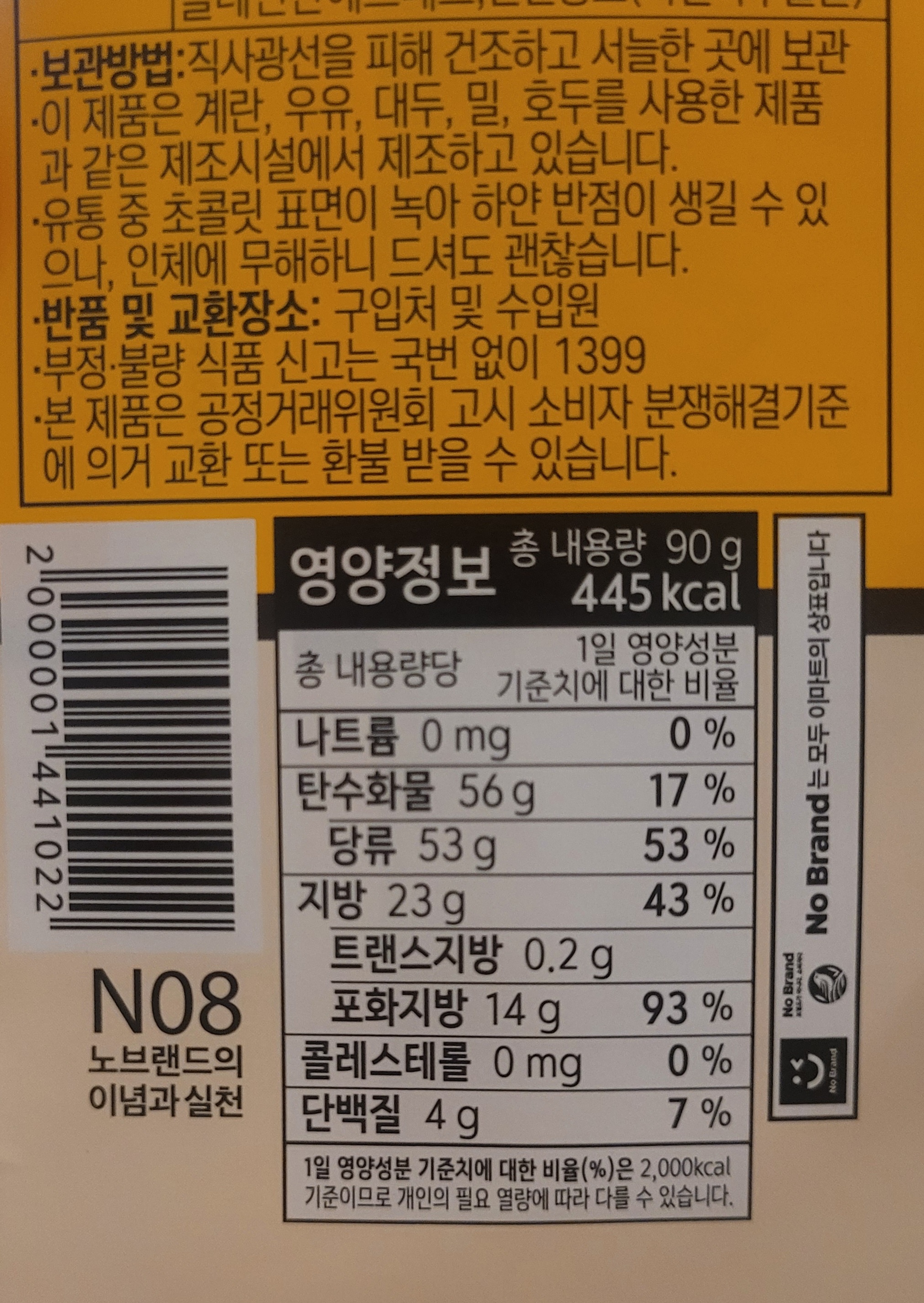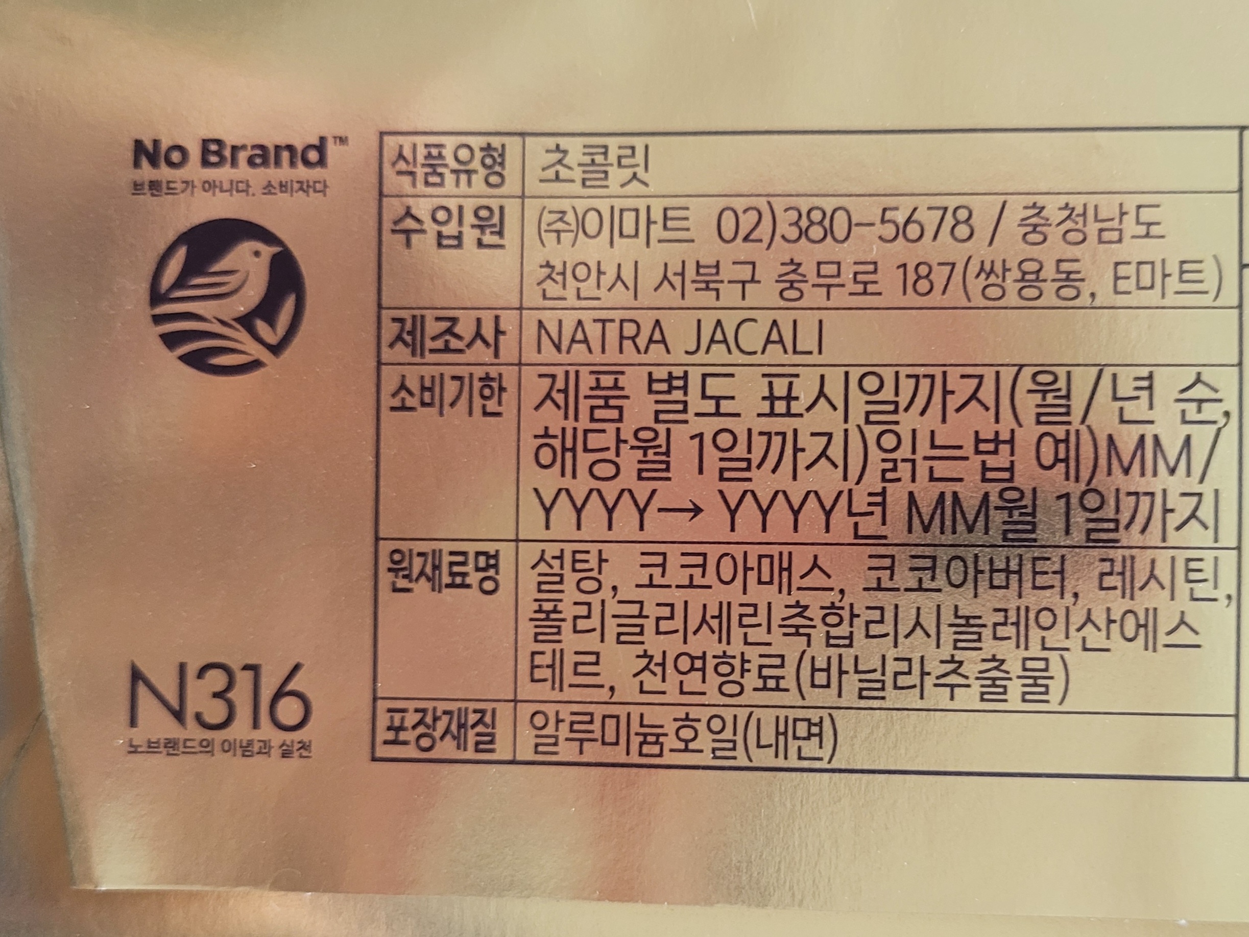 노브랜드 초콜릿 싸서 성분도 별로겠지?라는 인식을 깨준다
