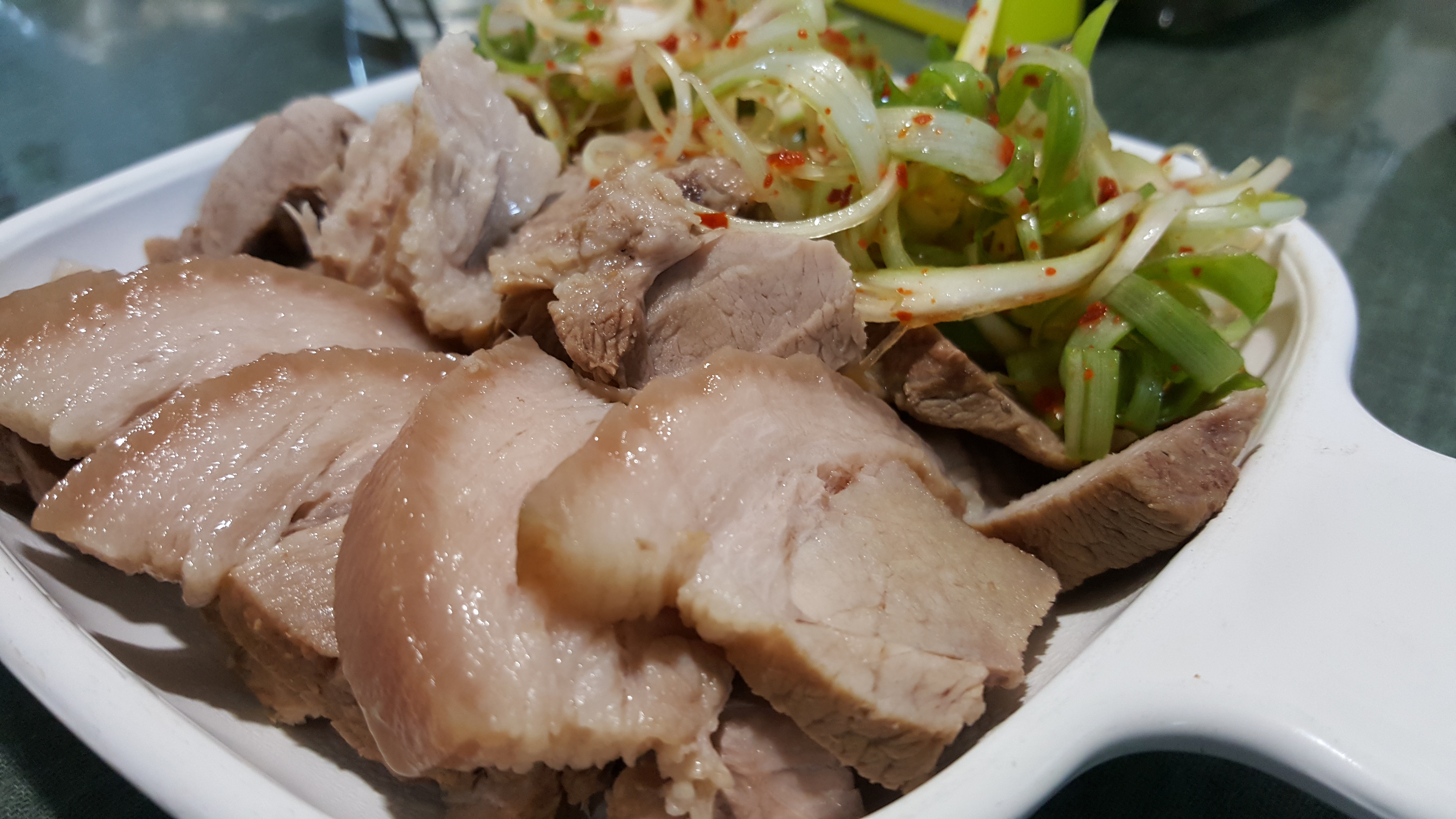 엄마와 마트를 갔는데 세일중이라 수육을 해먹을 돼지고기를 샀다. 1키로가 넘는 양. 엄마는 미사를 갔고 나는 엄마가 오기전에 수육을 만들어보기로 했다. 백종원 레시피를 후루룩 훑어봤다. 생각보다 쉬울 것 같다. 일단 고기는 찬물에 30분정도 담궈준다. 핏물을 빼기위함임. 그동안 채소를 준비해준다.