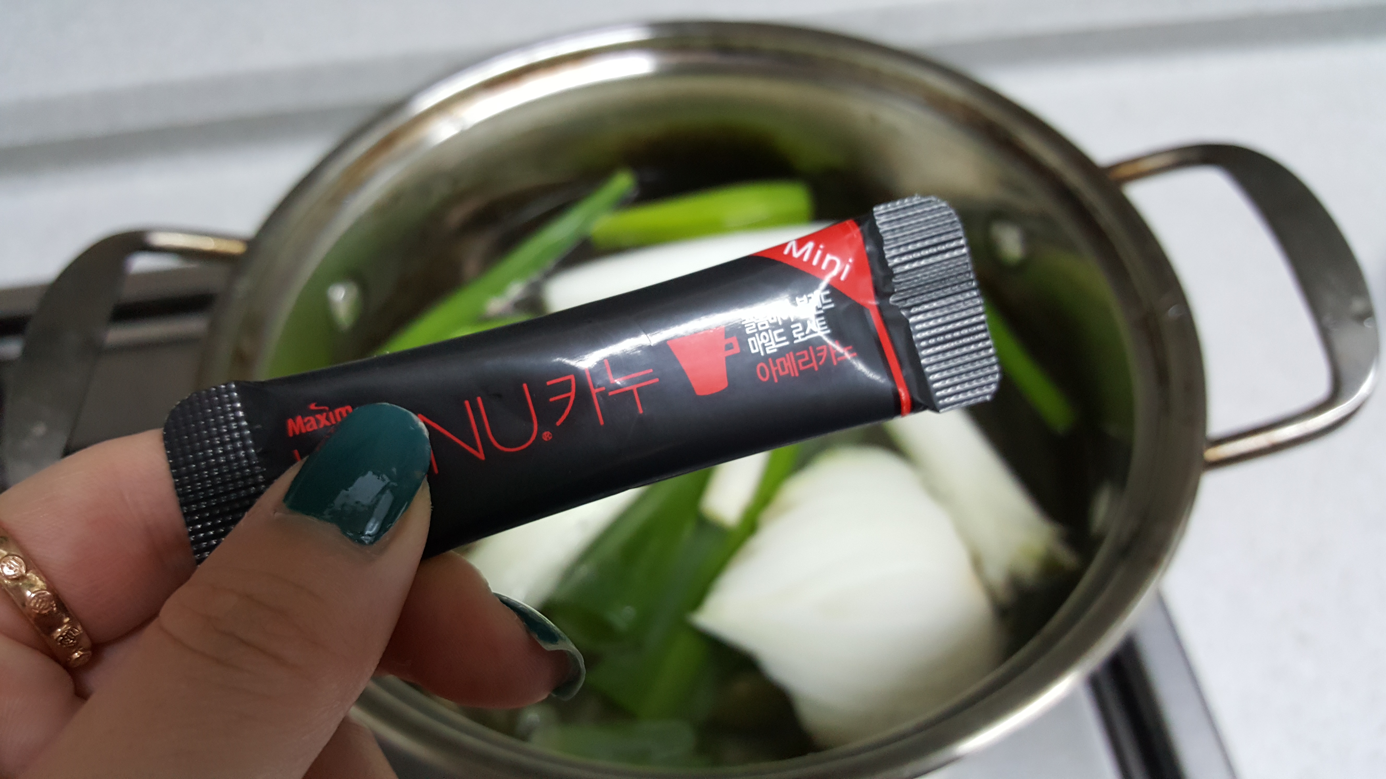 고기의 잡내제거를 위해서 커피를 넣으면 좋다. 백종원 팁! 커피믹스말고 커피만 들어있는게 좋다. 카누가 적당하다.