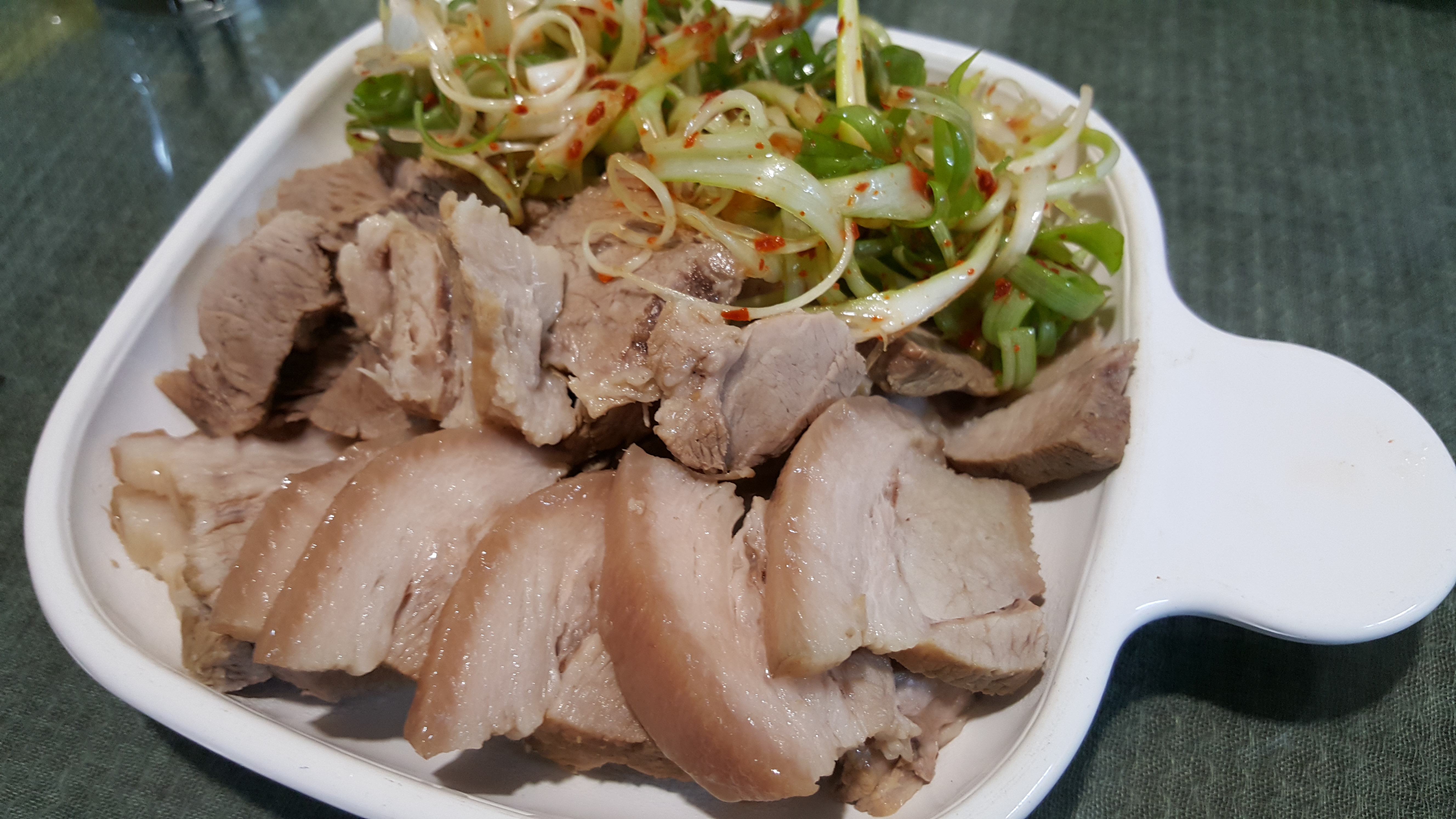 짜잔. 백종원 수육 완성! 곁들여 먹을 파채도 완성이다. 먹을만큼만 썰어놓았다.
